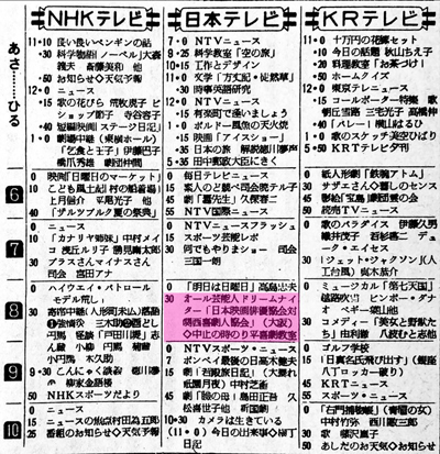 1957年の第1回の番宣広告と1957年8月24日のテレビ欄