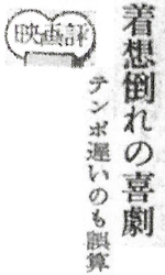 現代劇の時代劇喜劇を狙っているのだが、まずテンポの遅いのが気になる。のんびりした現代喜劇のそれではなく、笑わせようとしてかえって間が抜けた恰好だ。つまり現代劇というのは都会向きではなく、地方向きの意味であるらしい。 やくざ映画には珍しく、女主人公を活躍させての喜劇だから何かともう少し気のきいた扱い方がありそうなものだが、これも結局はアイデア倒れというものだろう。 万能選手がお色気の前には手も足も出ないおかしさや、やくざのくせにただ一つバクチだけは全然疎いという面白味も、その場だけのお笑いに終わらせる手はあるまい。が、それもこれもテンポの遅さが感じさせるので、材料としてはどんな時代劇でも大した変わりはない。キビキビした運びで展開するのがこういう映画では得意だし、そこに腕を見せるのが演出の要点でもあるのではないか。 雷蔵、京マチ子ともに彼らとしては軽い演技だが、喜劇を計算しすぎたきらいがある。それなら、大辻伺郎の通俗さの方が一枚うわ手といえるだろう。【王】(日スポ東京 02/09/61) |