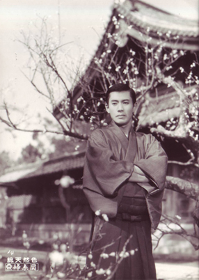 “お蔦・主税のこころ意気・・・”の歌の文句でよく知られ、映画に舞台に幾度となくとり上げられた泉鏡花原作の『婦系図』が、折からのリバイバル・ブームに波に乗って大映京都で、市川雷蔵の主税、若尾文子のお蔦で三隅研次監督のメガホンでクランクを開始した。 ヒロインの若尾文子は、前作『雁の寺』の熱演で体をいためたために、まず雷蔵の主税が書生をつとめる酒井俊蔵邸のセットからスタートした。スリの少年だった主税だが酒井に拾われ、人間的にも成長してゆくが、酒井家の令嬢妙子がいあmではすっかり立派になった主税に秘めやかな思慕を寄せるといったところがこの日のシーンである。妙子に扮するのは新東宝から大映入りをした三条魔子で、『若い奴らの階段』『家庭の事情』についでこれが三本目というわけ。 そこで『婦系図』について感想を聞くと「原作は読みましたが、映画やお芝居は全然知らないんです。子供の頃、見たような記憶がホンノリとはあるんですけれど・・・、でも私が是非やりたいと思っていた純情な娘役なので、地で行けると思います」と大変な張り切りかた。 また時代劇については「演ってみたいとかねがね思っていました。でもお姫さまよりは庶民的な娘役がいいと思います。雷蔵さんnようなベテランとご一緒すると自然に足が震えるんです」と首をすくめていた。 これに対して雷蔵は「『婦系図』は不思議にこれまで一本も見てないんです。だからかえって自由に僕なりの主税が出せると思ってるんです、この作品に関する限りお互いに一年生なんだからご心配なく」と三条魔子を励ましていたが、クランク早々、和やかな雰囲気の中にも「新しい“婦系図”」(三隅監督の話)への意欲がみなぎっていた。 ★梗概★ 帝大教授酒井俊蔵の恩情で、立派な教育を受けた早瀬主税は、兄妹のようにして育った酒井の娘妙子が自分に恋をよせているのを知り、これを受けては義理ある先生にすまぬと、酒井家を出た。そして魚屋めの惣の世話で、かねてから恋仲だった柳橋の芸者お蔦と、先生には内証で世帯を持った。かつての酒井先生の情人で、妙子の実の母であるお蔦の姉芸者小芳は、身分違いの恋の不幸を主税に説くが、主税は、芸者を妻にするのが出世の妨げなら出世せぬまで−と、初志を変えない。 ところが、ふとしたことで主悦に恨みを持つ、静岡の権勢家の息子で同窓の河野英吉は、さまざまな策動をして主税をスキャンダルにまきこみ、さらにお蔦のことを酒井先生に告げて処分を迫った。酒井は主税をかばいつつも、お蔦とは別れさせるといわざるを得ない。酒井から、俺か女かどちらかを選べと迫られ、主税はやむなくお蔦と別れることを決心し、散歩にことよせてお蔦を湯島境内へさそった。思いもかけぬ別れ話にお蔦は歎き悲しむが、ついに得心して身を引くことを承知した。そして、髪結いをしているめの惣の家内のところで、すき手として働くことになった。 河野の卑劣な行為を怒った主税はめの惣から、河野の当主の夫人がお抱えの御者と密通し、子までなしたいきさつを知り、この事実をもって復讐しようと、静岡へ去った。河野一家に接近してドイツ語私塾をひらいた主税に、政略結婚で河野家の不幸な娘はぐんぐんひかれてきた。その娘に、主税は母親の秘密を暴露する。それを立聞きした夫人の銃弾で、主税は重傷を負い、病床の人となった。 一方、お蔦は風邪をこじらせて死の床にあった。たまたま訪ねた妙子の連絡で酒井も駈けつけた。酒井の命令で、めの惣が静岡に飛ぶが、主税は帰らない。「芸者にも真実な女がいますよ」と、お蔦は酒井に訴えて息絶えた。ようやく傷のいえた主税は、河野家の当主が夫人を射殺した日、東京へ帰った。今は亡きお蔦との思い出深い湯島天神にたたずむ主税の背に、梅の花が散った。(キネマ旬報) 早瀬主税は、十二の時、雑踏の中で、帝大のドイツ文学教授酒スリ損じたが、酒井の温情によって家に伴われ、書生として養育された。 それから十年、その彼に、兄妹のようにして育った酒井の娘・妙子がいつか恋情を向けて来る。妙子の好意を受け入れては義理ある先生にすまないと決心した主税は、酒井の家を出、知り合いの魚屋めの惣の世話で家を見つけ、かねてから恋仲だったお蔦と先生に内緒で所帯を持つ。 お蔦の姉芸者小芳は、酒井の娘妙子は実は自分の生んだ子だが、日陰者の身ゆえに、親とも名のれぬありさまと告白して、身分の違う二人の結ばれる不幸を説く。主税は驚くが、芸者を妻にして妨げになるなら、出世はせぬまでと心意気を語った・・・。だが、ふとした事件から主税に芸者の妻のあることを知った酒井は、主税を呼び出し、お蔦と別れることを命じる。 明治四十年の原作発表以来、新派の舞台に、スクリーンに、幾度となく天下のファンの紅涙をしぼり、広く人口に膾炙しているお蔦・主税の悲恋を描いた文芸大作。 |