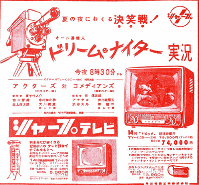 1957年の第1回の番宣広告と1957年8月24日のテレビ欄