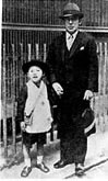 雷蔵(本名・太田吉哉)は昭和六年八月二十九日に京都で生れている。父は商社づとめだったが、雷蔵が母の胎内にいるときに出征している。母富久は実家に戻り、章雄(雷蔵の幼名)を生んでいる。が、生後まもなく遠縁にあたる竹内嘉三が養子として引きとりたいと申しでた。竹内はのちの市川九団次である。富久は幼児を手ばなすことにためらいをもったが、周辺の説得に負けて養子として竹内家に托すのである。