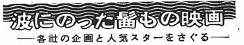 製作会社のニューフェイス、日活は、出発の作品が『国定忠治』でヒットしたことで、新国劇と提携した時代劇が多く、『沓掛時次郎』、『平手造酒』も新国劇が出演している。現在はマキノ一家が、『秋葉の火祭』を製作していて、これが一本だが、企画準備中で今年度製作予定のものは多く、『森蘭丸』(佐伯清監督)、『大利根の対決』(滝沢英輔監督)、『落日の血闘』(野口博志監督)の他二、三本はあるらしい。俳優はいないといった方が当るほどいない。だから新国劇と提携するか、中村扇雀を使うかぐらうで、キャスティングの方にはあまり魅力がないのが難点であろう。 |